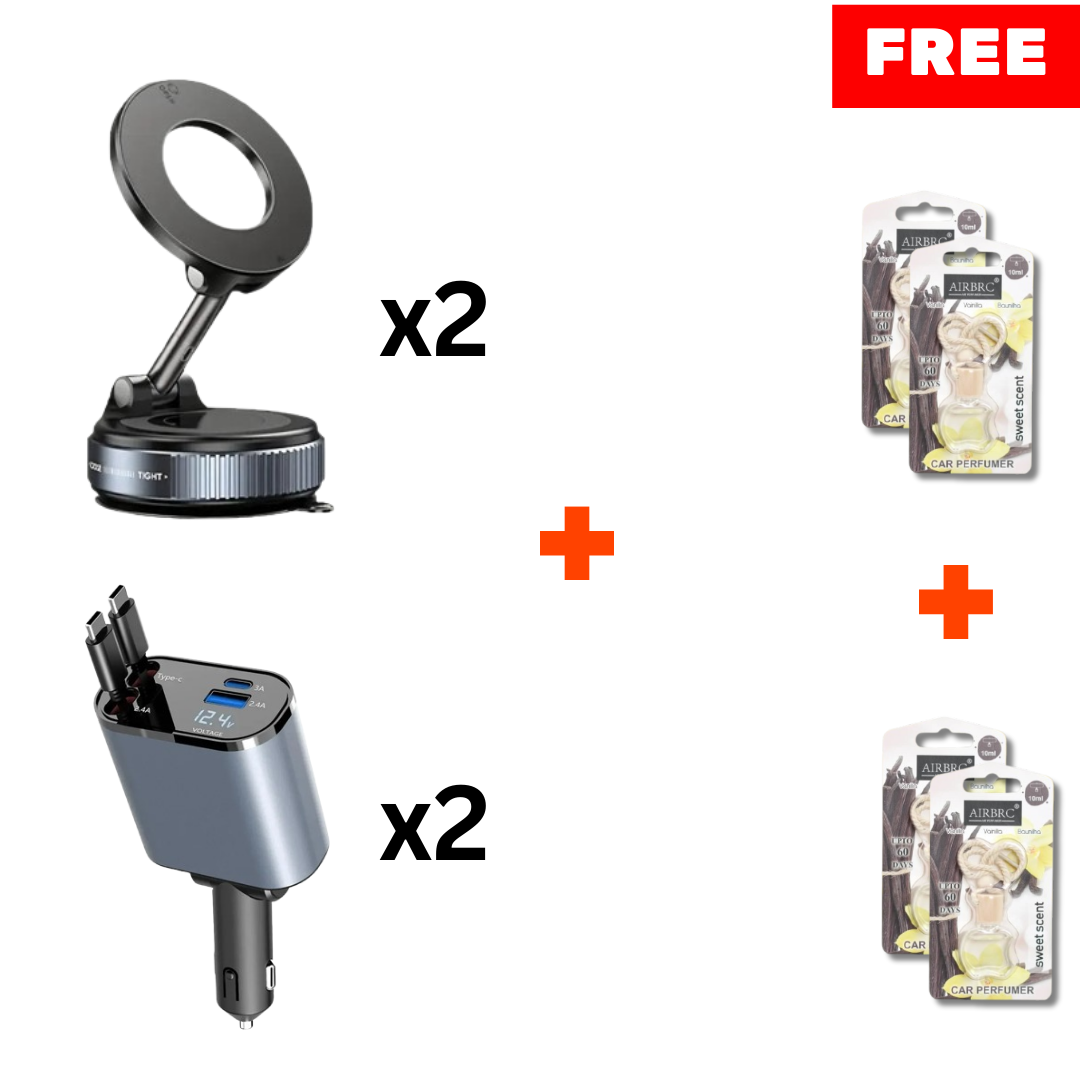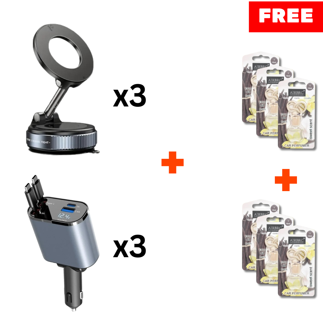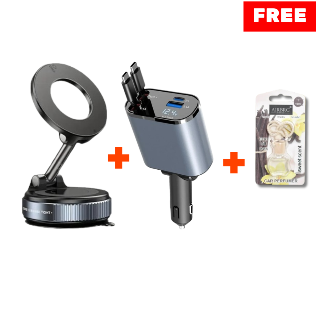 This charger is a lifesaver. I use Google Maps a lot and my battery used to die halfway. Now I can charge and drive without fear. The magnetic holder is also very strong, even on bad/bumpy roads my phone does not even shake at all. And the free air freshener makes my car smell like pure luxury. This combo is a 10/10 for real!